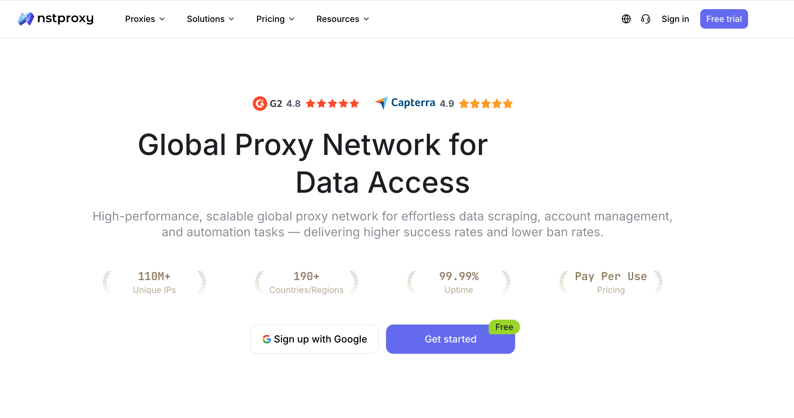 To overcome the limitations and risks of free methods, Nstproxy provides a professional-grade infrastructure that ensures safe, fast, and anonymous access to restricted content. As a leading proxy provider, Nstproxy offers a variety of solutions tailored to your needs.