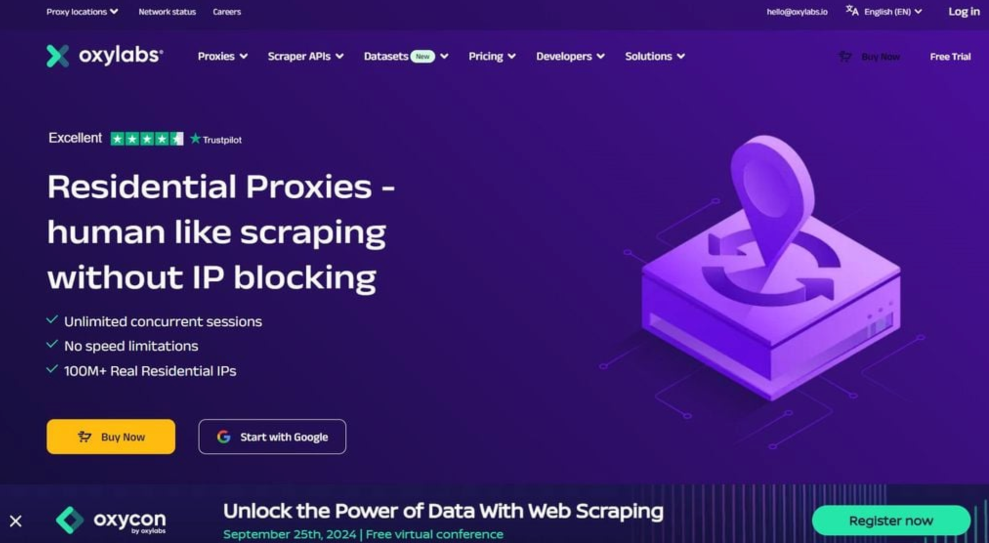 Oxylabs 是代理市场的资深参与者,以其庞大的 IP 网络和企业级解决方案而闻名。他们提供多种类型的代理,包括住宅、数据中心和 ISP 代理。Oxylabs 的住宅代理池庞大,能够有效处理各种 CAPTCHA 挑战。他们专注于提供稳定性和高可用性,为大规模数据收集项目提供定制服务。