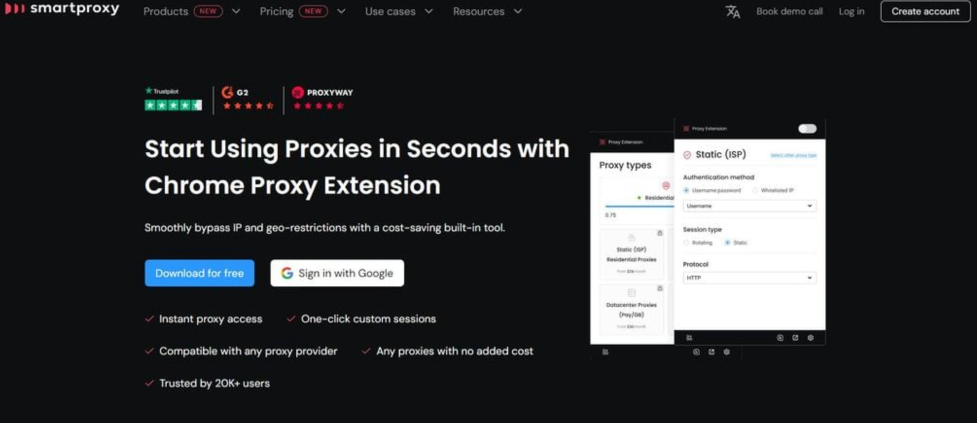 Smartproxy 是市场上最受欢迎的代理服务之一,以其用户友好的界面和高质量的住宅代理而闻名。他们提供一个庞大的住宅IP网络,支持地理定位和会话控制。Smartproxy 的主要特点是易于使用,使即使是代理新手也能快速入门。