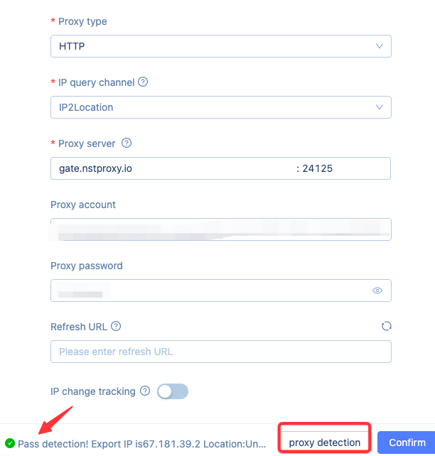 点击 “检查代理” —— 如果显示有效的 IP 地址,则设置成功。